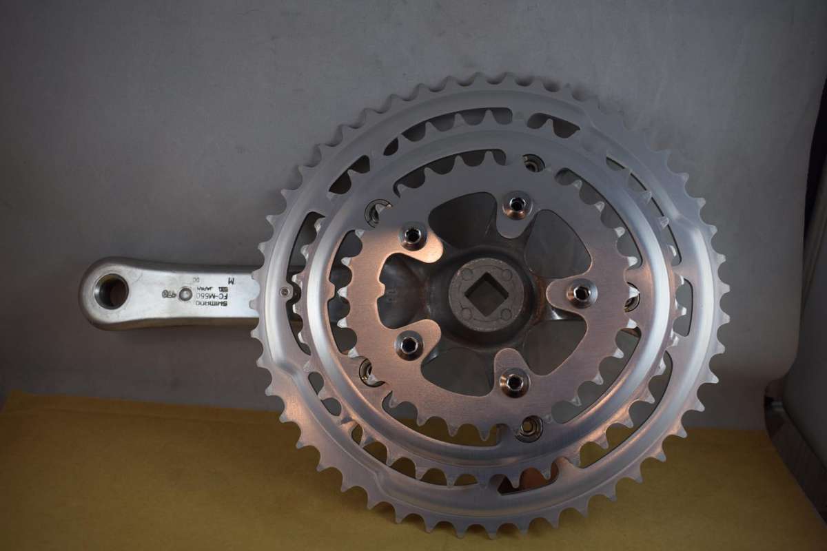 Shimano Deore LX FC-M550 crankset 48/38/28 teeth 170mm crank arm BIOPACE-SG B-48 ( Oval Shape Sprocket ) aluminium silver square botom bracket New Old Stock