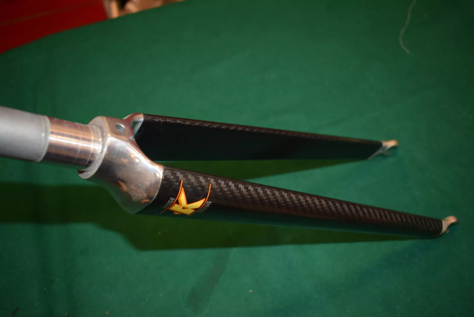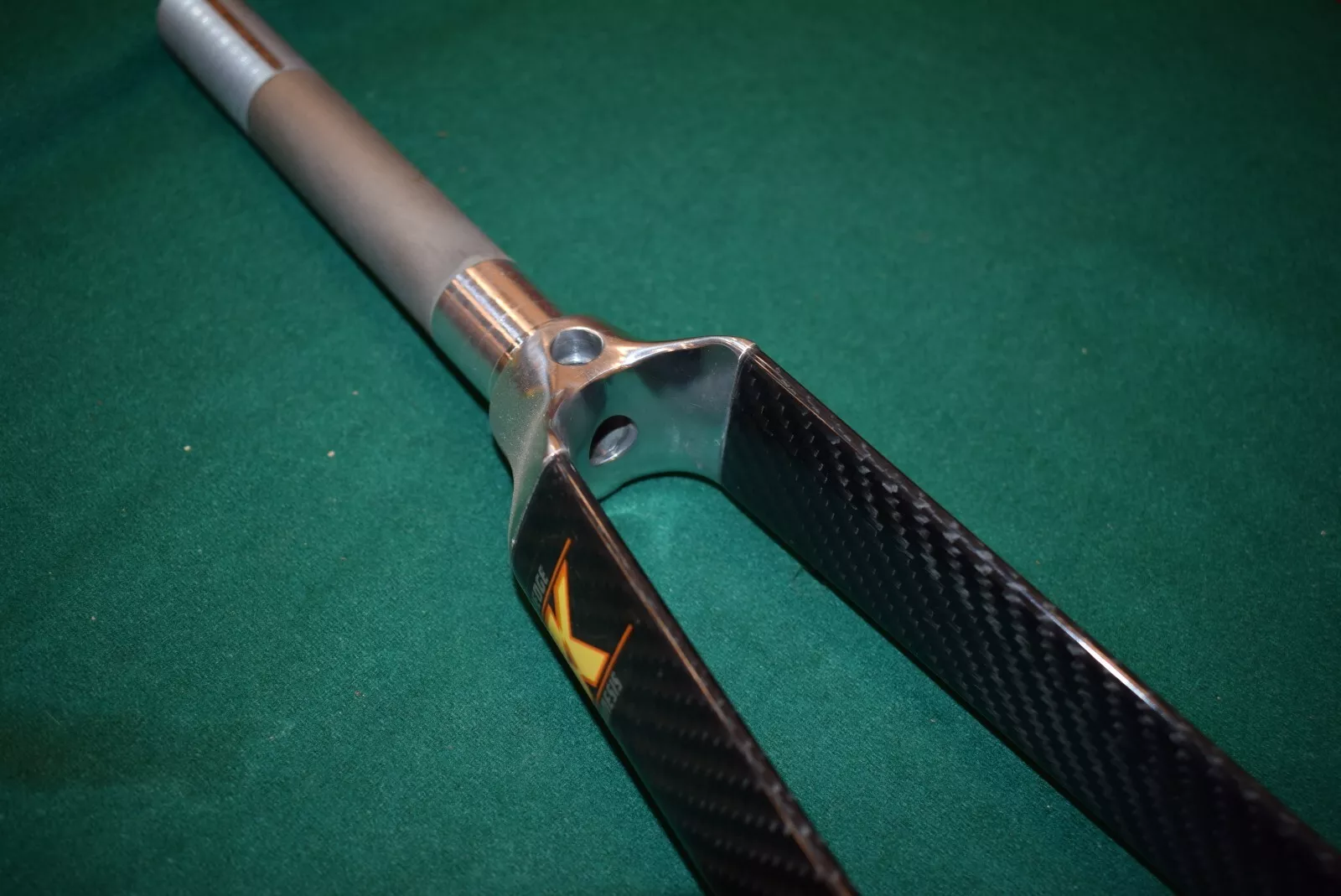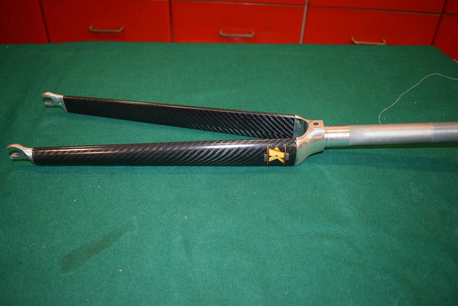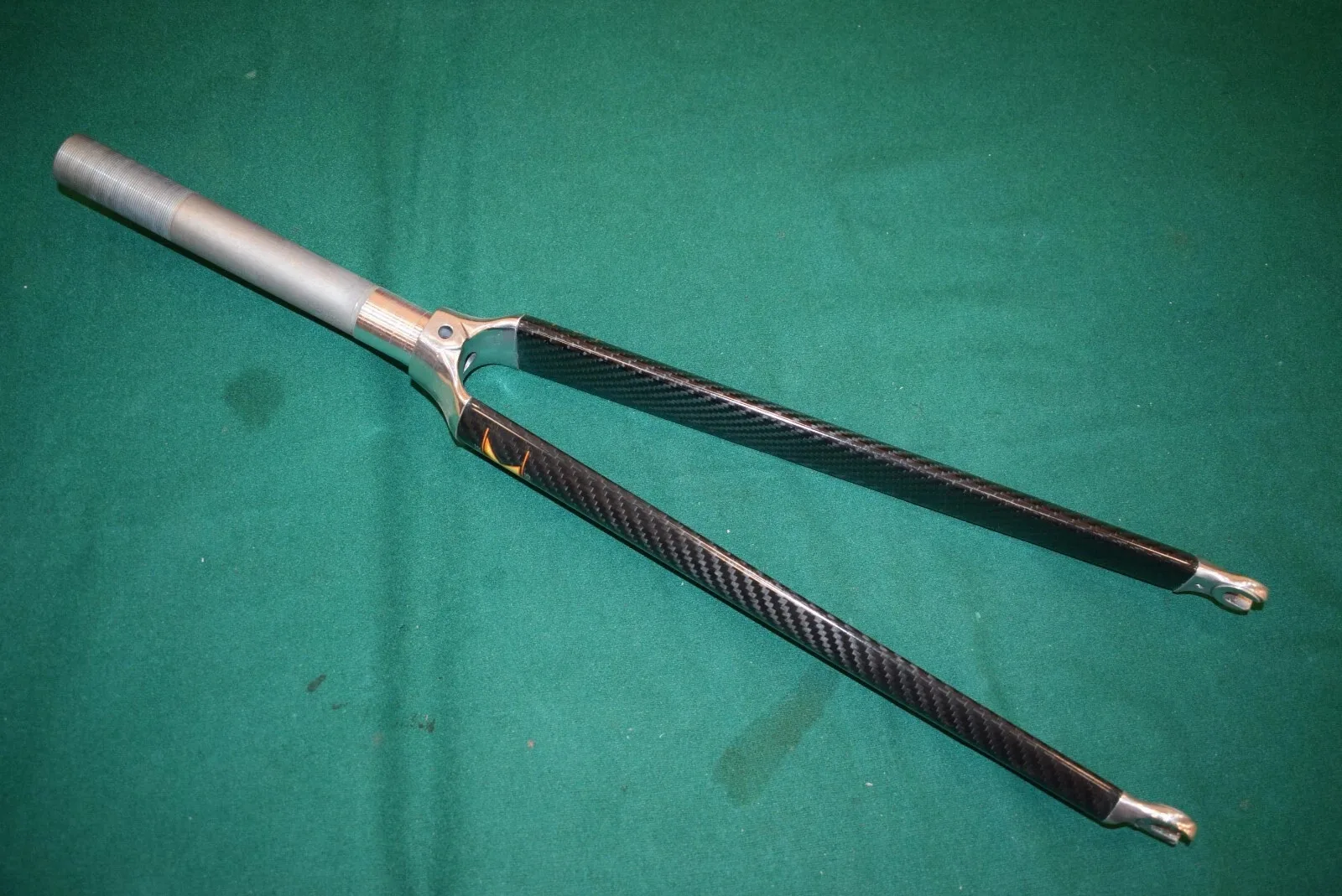 KINESIS vintage 1'' inch Carbon / aluminium road fork 700C straight blade, threaded, 190 mm steerer tube length, 65mm steerer tube thread approx., 420g aprox. black/silver NOS Vintage