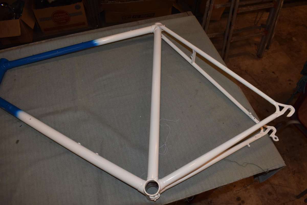 Road racing bicycle frame steel vintage 62cm / 60cm XL blue / white NOS.
