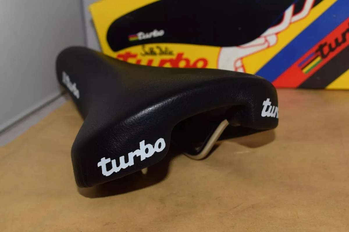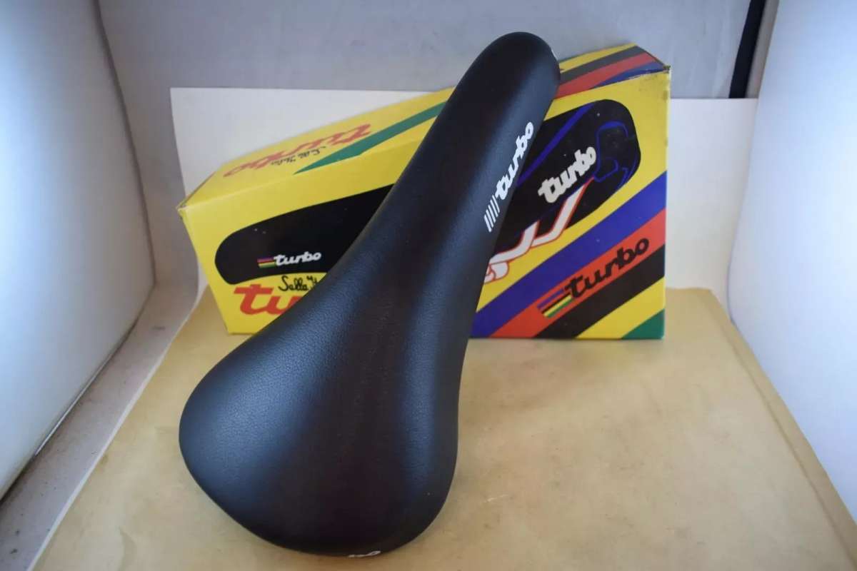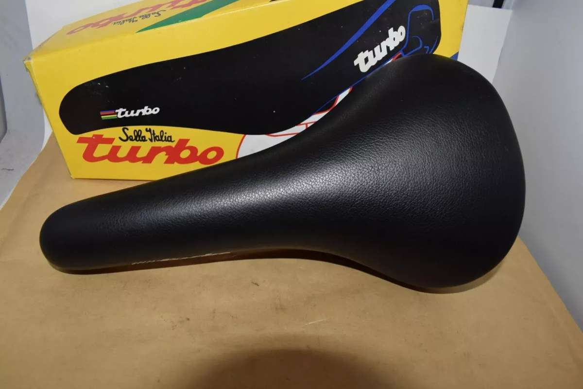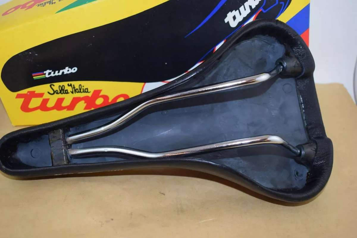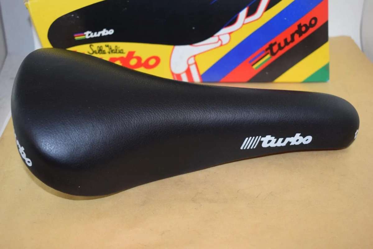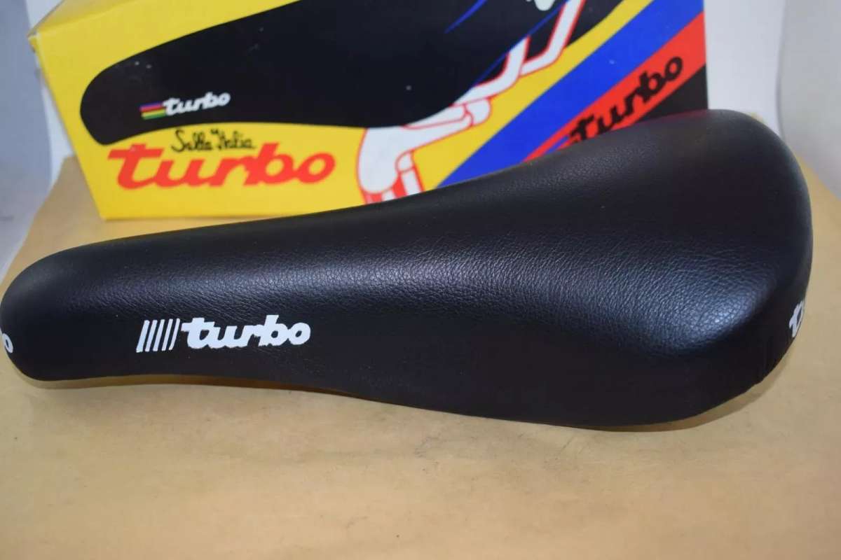 SELLE ITALIA TURBO Leather seat saddle Chrome Rail STAMPED 1990 Vintage NOS